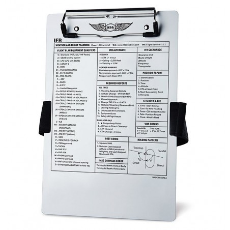 La planchette de vol IFR en aluminium brossé durable est un excellent moyen d'organiser vos données de vol, offrant une surface solide pour la prise de notes en vol ainsi qu'un accès rapide aux informations IFR importantes sous la forme d'une plaque permanente.